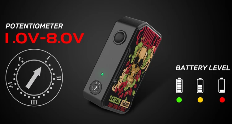 MVV 2 Mod de DOVPO est un mod mécanique basé sur un potentiomètre avec de hautes performances. Il est alimenté par deux batteries 18650 avec une puissance maximale de 280W. Plusieurs protections sont appliquées pour garantir une vaporisation sûre et stable. Et il est livré avec un port USB type-c intégré pour une utilisation pratique. Équipé d’un indicateur LED tricolore, il affiche clairement le niveau réel de la batterie. Il est livré avec un couvercle de batterie nouvellement conçu avec des imprimés colorés. Et le panneau magnétique est interchangeable pour une apparence personnalisée. Il dispose également d’un bouton de tir ergonomique pour une utilisation facile.