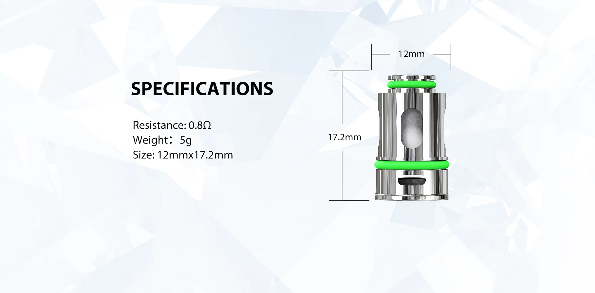 | Coil Resistance | 0.4ohm (20-30W), 1.2ohm (7-13W), 0.8ohm (12-18W) |