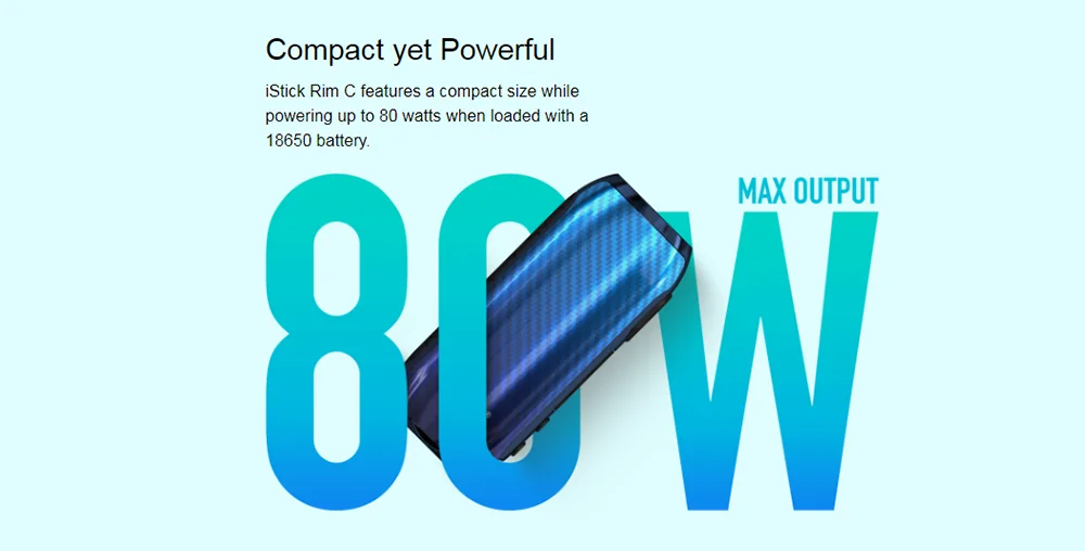 IStick Rim C Mod, un mod de boîte TC ergonomique et de taille appropriée, est compatible avec le Kit iStick Rim C avec réservoir MELO 5. Alimenté par une seule batterie 18650 remplaçable avec une sortie maximale de 80W, il adopte un port USB type-c pour une charge pratique et rapide. Et il choisit 3 types de mode pour votre option: mode TC, mode VW et Mode Bypass. En outre, il est équipé d’un écran pour vous montrer des données de vapotage claires. Et pour assurer votre sécurité, il vous offre une Protection contre les courts-circuits et une Protection basse tension.