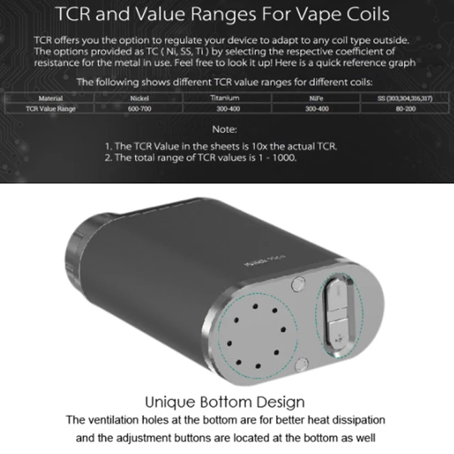 Tc-ti/TC-SS/ TCR modes. Avec remplissage e-liquide supérieur
