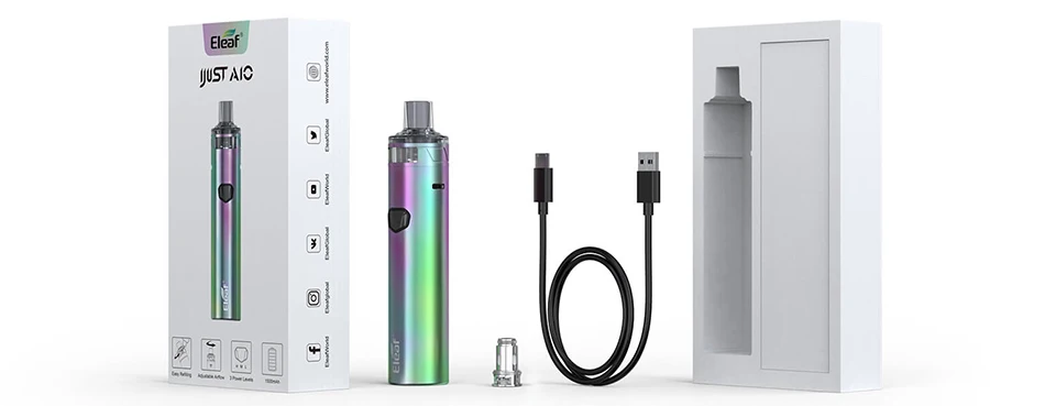 IJust AIO est conçu comme un kit de vape de poche tout en logant une énorme batterie interne de 1500mAh, avec un voyant LED pour afficher la capacité restante de la batterie.Il offre 3 niveaux de puissance pour personnaliser votre expérience de vapotage,Avec la bobine de maille GT pour découvrir la saveur pure et les nuages denses.