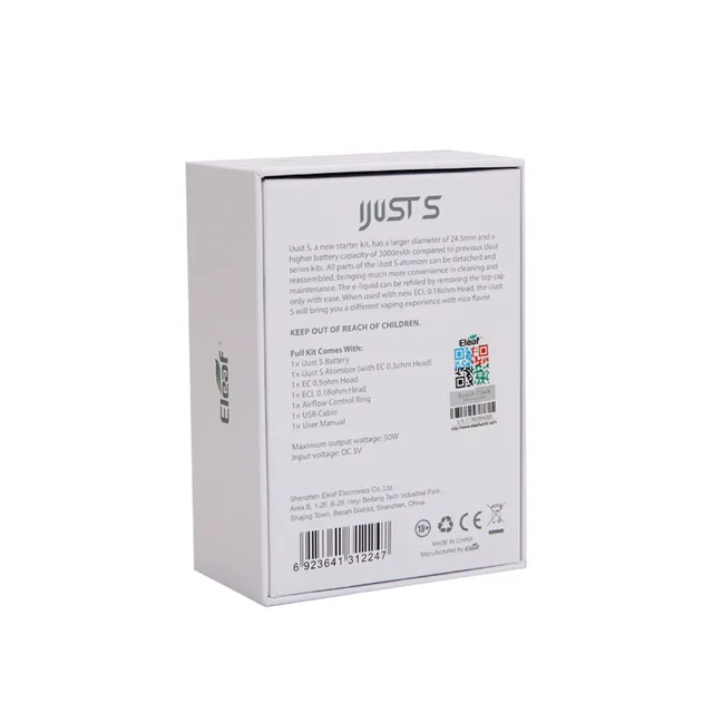IJust S, un nouveau kit de démarrage de la série iJust, dispose d’une grande batterie iJust S de 24.5mm de diamètre et d’une capacité de 3000mAh ainsi que d’un atomiseur iJust S de 4ml. Toutes les pièces de l’atomiseur iJust S peuvent être détachées et remontées, apportant beaucoup plus de commodité dans le nettoyage et l’entretien. Le jus électronique peut être rechargé en retirant le capuchon supérieur uniquement avec facilité. Lorsqu’il est utilisé avec la nouvelle tête ECL 0,18 ohm, l’ijust S vous apportera une expérience de vapotage différente avec une belle saveur.