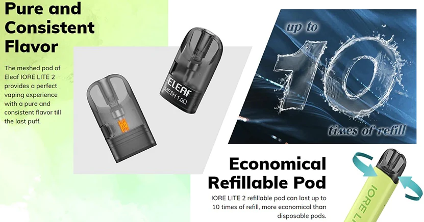 Le Kit IORE Lite 2 est le kit de système de dosette rechargeable qui est super léger et portable. Conçu avec une dosette à mailles 1.0ohm, il vous offrira une grande expérience de vapotage avec une saveur pure et constante. La dosette peut durer jusqu’à 10 fois la recharge, ce qui rend IORE Lite 2 plus économique que les dosettes jetables. IORE Lite 2 dispose d’une capacité de 2ml de jus électronique et peut être rempli de côté. La capacité de la batterie est de 490mAh.