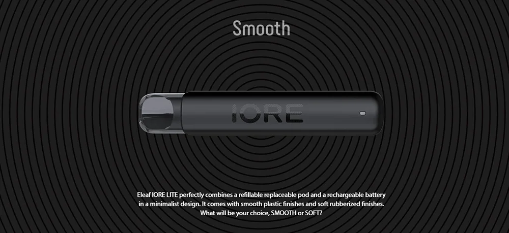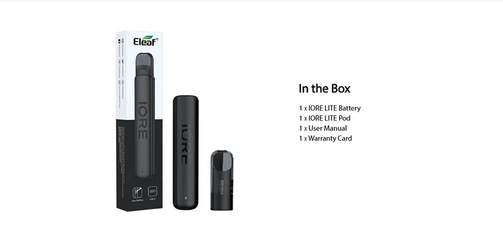 Le Kit IORE Lite adopte des matériaux ultra-légers et de qualité supérieure pour une expérience de vapotage portable et sur le pouce. Eleaf IORE Lite est combiné avec une dosette rechargeable de 1.6ml et une batterie rechargeable de 350mAh dans un design minimaliste. IORE Lite est activé par tirage. Il est super facile à utiliser pour sa fonction sans bouton. Tout le corps adopte des finitions en plastique lisse et des finitions caoutchoutées douces pour vos choix.