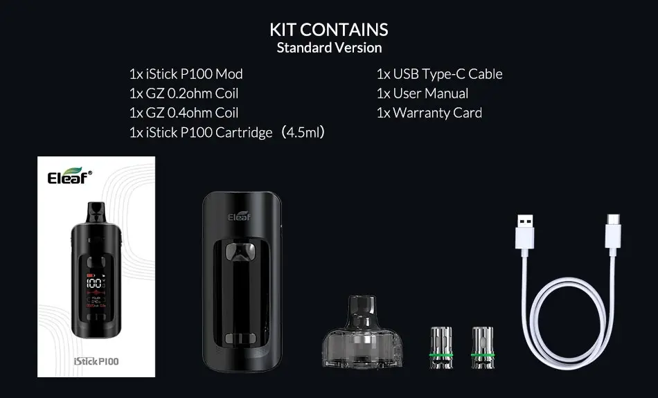 Eleaf – Kit de cigarette électronique iStick P100, avec Pod Mod, 100W, batterie 3400mAh, cartouche de 4.5ml, bobine GZ, nouveau, Original
