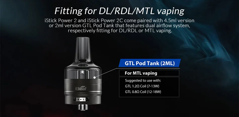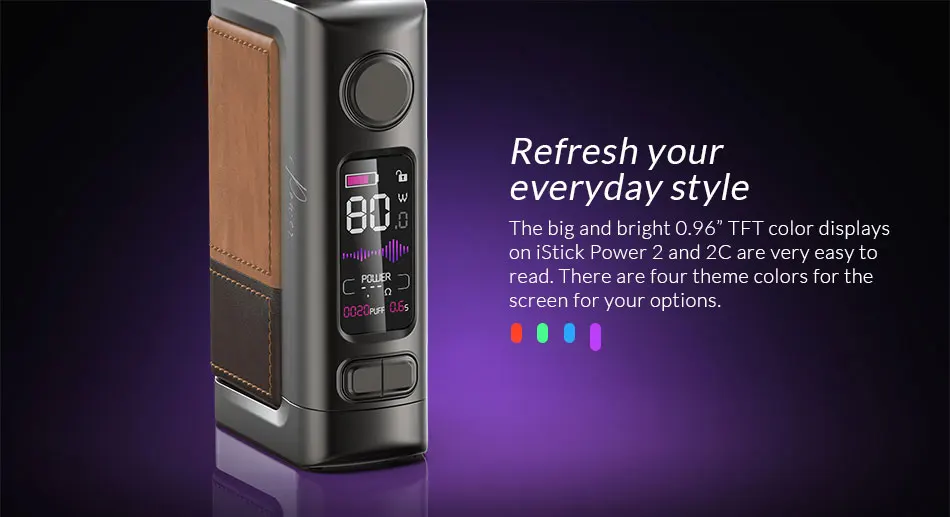 La nouvelle génération iStick Power 2 est de retour. Retour à la forme simpliste de la boîte d’origine iStick Power, iStick Power 2 présente un design élégant en cuir de bloc de couleur et est très confortable à tenir. Emballé avec batterie intégrée de 5000mAh, puce d’avatar intelligente, écran couleur de 0.96 pouces, et associé au réservoir de pod GTL, eleaf iStick Power 2 comprend toutes les fonctionnalités que vous attendez d’une box mod vape. Pour satisfaire différents besoins, iStick Power 2C alimenté par deux batteries 18650 est également disponible.