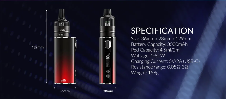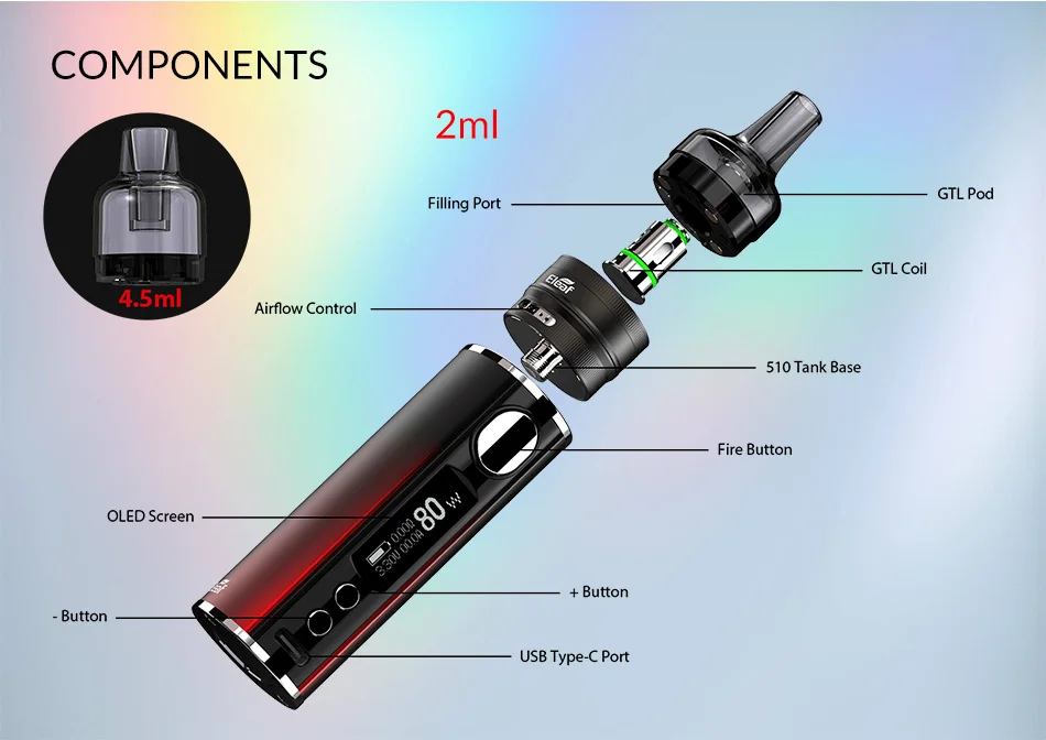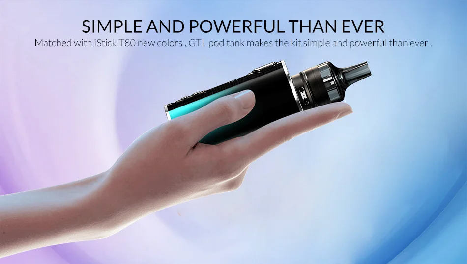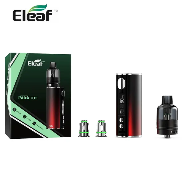 Eleaf iStick T80 Kit avec réservoir GTL Pod montre un kit de vape de démarrage multifonction composé d’un nouveau Mod colour iStick T80 et d’un réservoir GTL Pod avec une base de filetage 510. Lorsque le pod GTL est assorti à la nouvelle couleur du Mod iStick T80, son apparence élégante et son style de vapotage personnalisé laissent une profonde impression sur les gens. Construction compacte et durable, portabilité, qualité de construction et haute performance sont certaines des caractéristiques du mod iStick t80. Le corps du mod est en alliage d’aluminium. Trois nouvelles couleurs sont fournies, dont deux couleurs dégradées élégantes et élégantes. Eleaf iStick T80 mod est alimenté par une batterie intégrée de 3000mAh avec une plage de puissance de 1-80W, ce qui est très approprié pour la vaporisation bouche à poumon et sous-ohm. Génère des nuages sans effort quand vous le pouvez et en avez besoin avec chaque pression sur le bouton surdimensionné intuitif. Équipé d’un jeu de puces exclusif, le Kit iStick T80 dispose d’une infinité d’options de contrôle de la température qui se couplent à une myriade de compositions de fils comme le nickel, le titanium et l’acier inoxydable.
