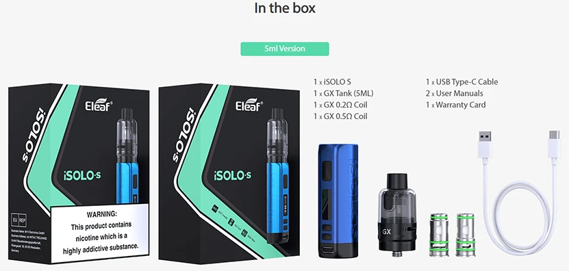 | Numéro de Modèle | Eleaf iSolo S Kit |