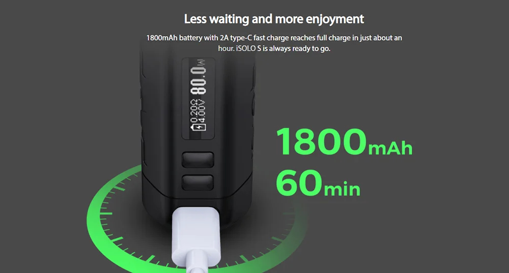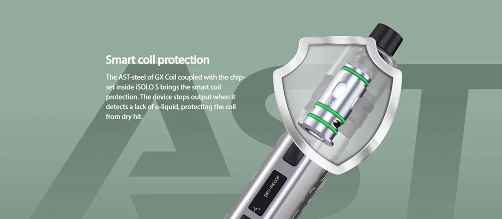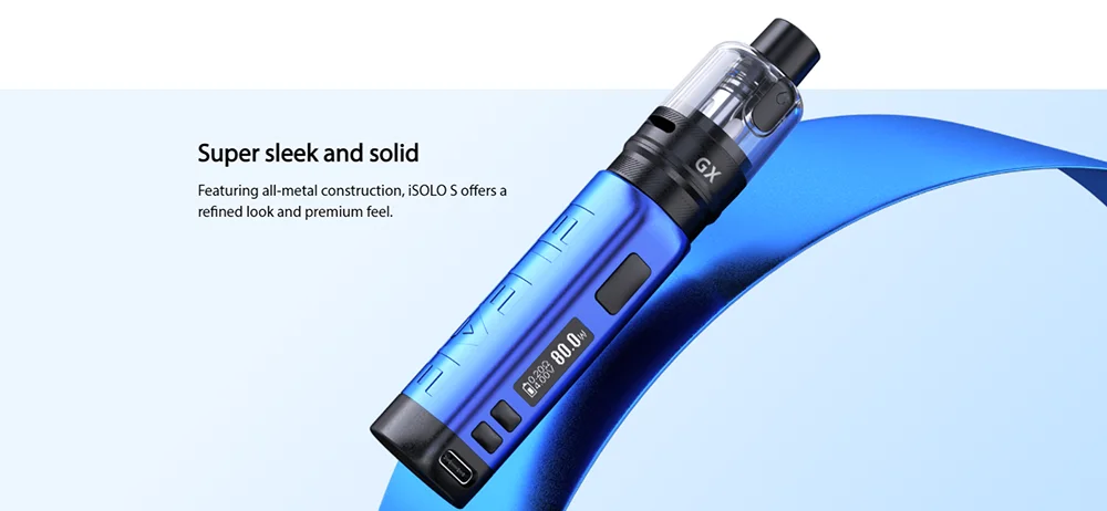 Le Kit insulo S combine le mod insulo S 80W avec le réservoir GX. Il est fait de matériaux entièrement métalliques pour offrir un look raffiné et une sensation premium. Le Kit Eleaf insulo S comprend une batterie built-in1800mAh avec une puissance maximale de 80W, ce qui le rend très compact et puissant. Avec une charge rapide de type C de 5V/2A, le Kit insulo S peut être complètement chargé en environ une heure. Il dispose également de multiples protections telles que la protection contre les surcharges, la Protection contre les décharges excessives, la Protection contre les surintensités, la Protection contre les surcharges et la Protection contre les courts-circuits. Avec une capacité d’e-liquide de 5ML, le réservoir de Pod GX dispose d’un remplissage latéral facile pour empêcher efficacement les fuites. Le système de flux d’air redéfini et la connexion magnétique rendent le réservoir GX simple et polyvalent à utiliser. Le réservoir GX Pod utilise également de nouvelles bobines GX puissantes maximisant votre satisfaction de vapotage. L’acier inoxydable innovant à l’intérieur de la bobine GX avec structure en maille chauffe en 0.001S et supporte une durée de vie plus longue, ce qui peut stimuler la saveur ultra riche et pure. L’acier AST de la bobine GX est également combiné avec le jeu de puces à l’intérieur de iSOLO S pour garantir la protection intelligente de la bobine afin que l’appareil puisse arrêter la sortie lors de la détection d’un manque d’e-liquide pour protéger la bobine de dry hit.