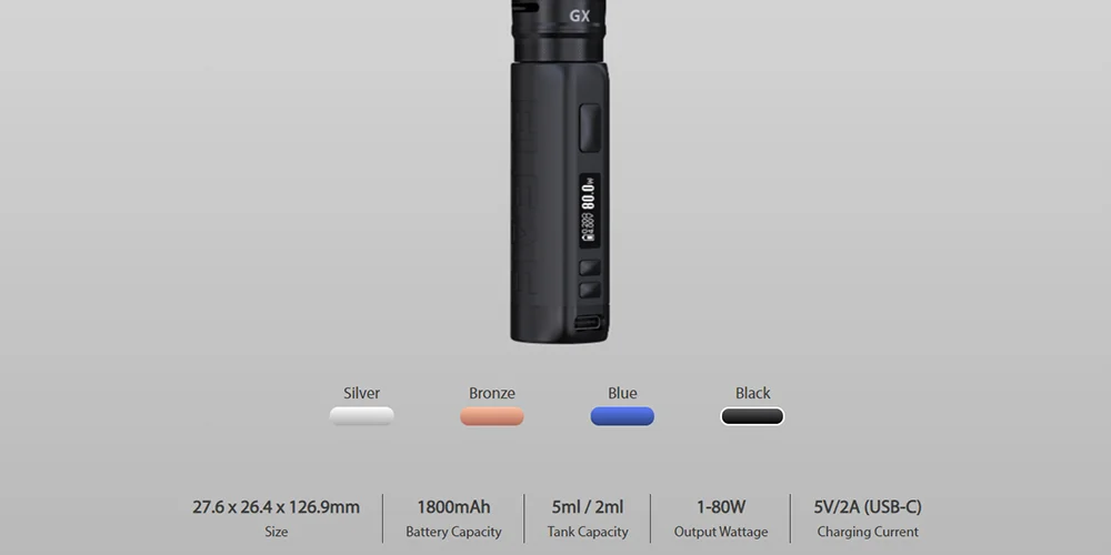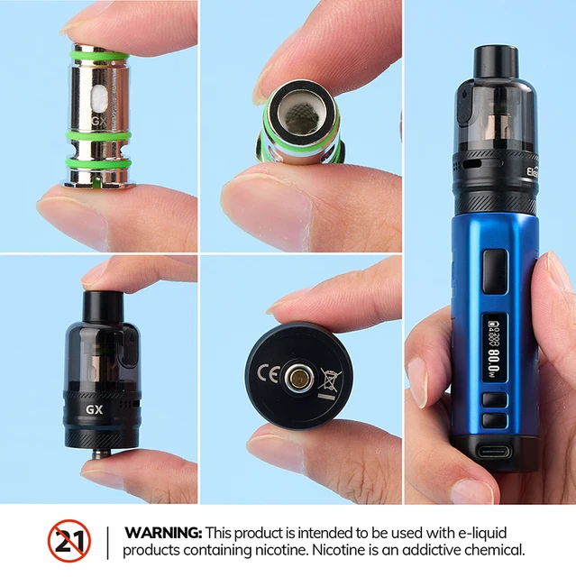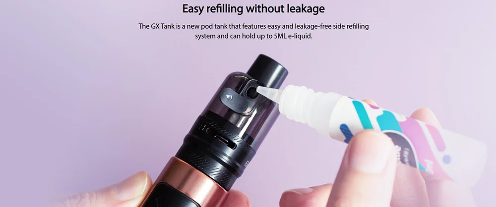 6. Réservoir de dosette GX avec capacité de 5ML d’e-liquide, système de remplissage latéral facile
