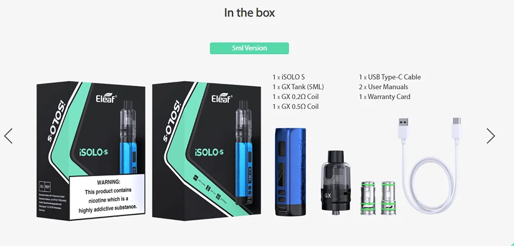| Numéro de Modèle | Eleaf iSolo S Kit |