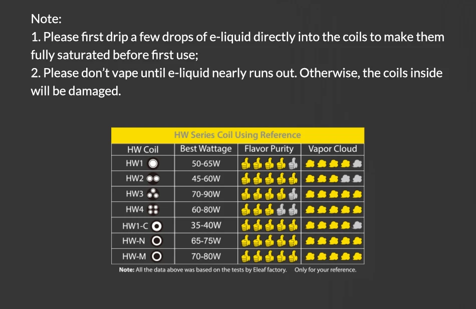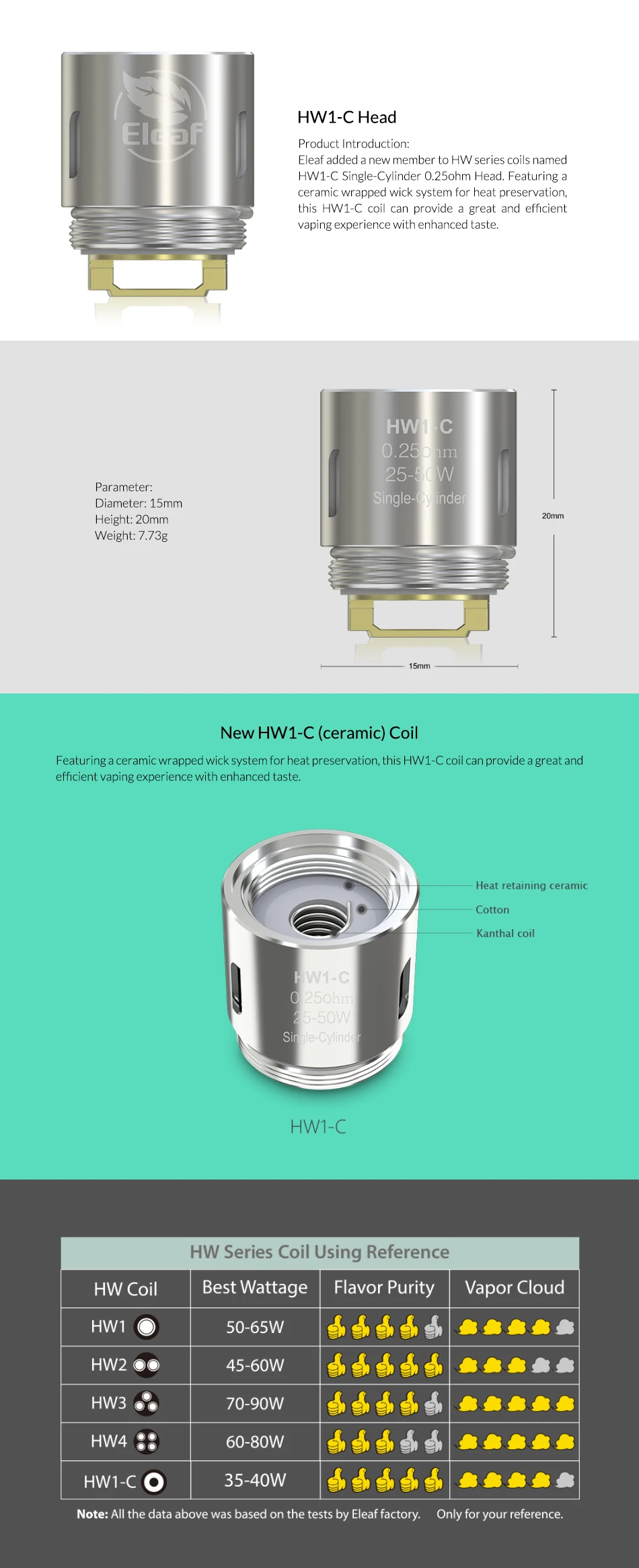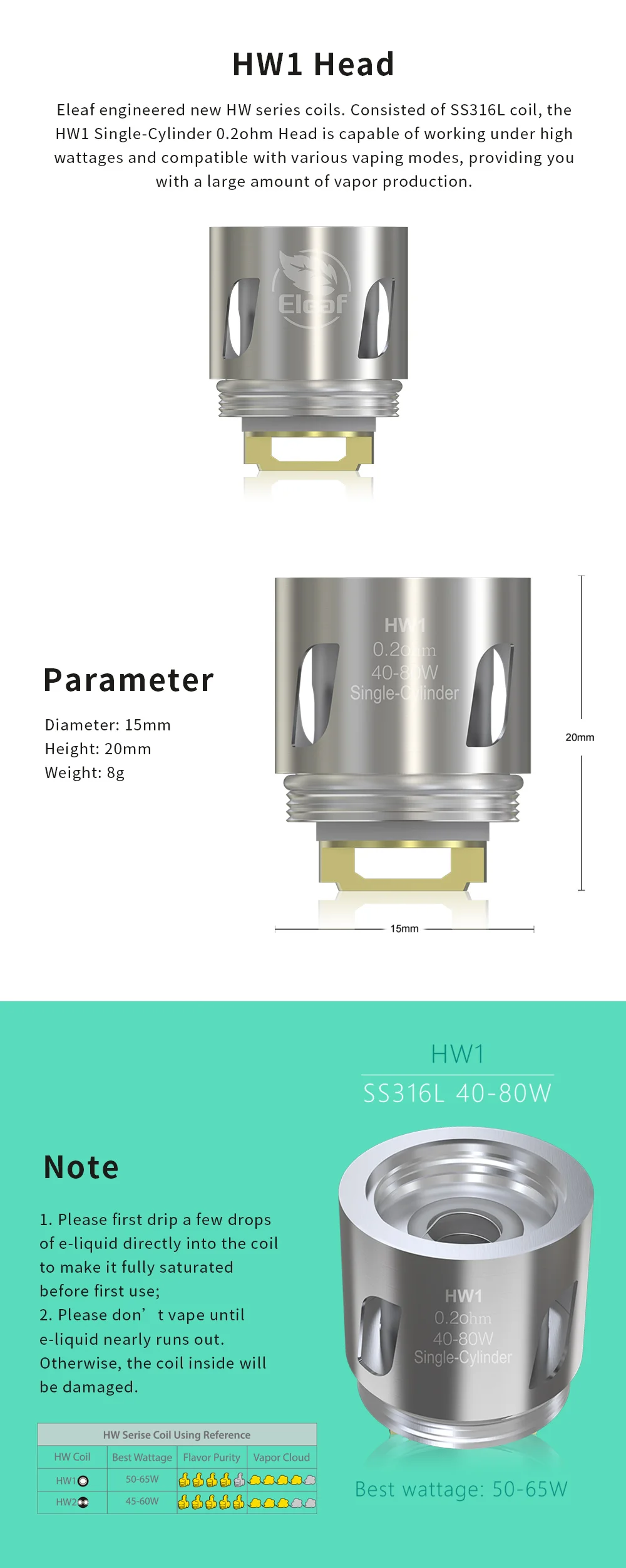 | Compatible Model | Eleaf HW Coil head HW1 /HW2 /HW3 /HW4 /HW1-C /HW-M/ HW-N Coil |