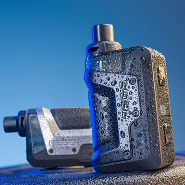 Geekvape Aegis Hero est un kit de mod de dosette sub ohm alimenté par une batterie de 1200mAh avec une sortie maximale de 45W, les utilisateurs peuvent ajuster la puissance de l’appareil pour correspondre à leur préférence de vapotage idéale. Une construction légère de boîte mod offre un design résistant, mais respectueux de la poche avec une poignée ergonomique en cuir patch offrant un confort lors de l’utilisation. Équipé de capacités IP67 étanche et antichoc, l’aegis Hero est un dispositif résilient. Les cosses de remplacement Hero 4ml sont dotées d’une méthode de remplissage par le haut pratique qui réduit les risques de fuite. Les caractéristiques de flux d’air réglables élégantes donnent aux utilisateurs un contrôle complet sur l’inhalation, tandis que l’installation de la bobine push fit fait de l’insertion et du remplacement des bobines un processus facile et sans tracas. Une méthode de bobine amovible permet une méthode de vapotage écologique et économique. Geekvape Aegis Hero compatible avec la série de bobines G, Avec une bobine de maille de 0.4 Ohm et une bobine de maille de 0.6 Ohm incluses, nous recommandons de les associer à des e-liquides de haute VG de 50% et plus pour de meilleures performances. Un écran OLED de 0.42 pouces affiche les données de vapotage essentielles et les modes de sortie, avec les boutons opérationnels adjacents à l’écran permettant aux utilisateurs de naviguer en watts variables et en mode de dérivation.