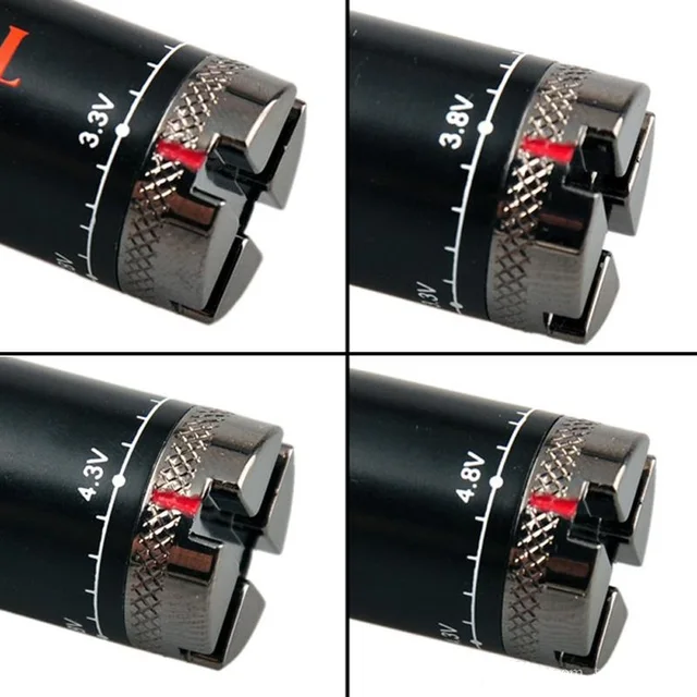 5. Cadran de réglage de la tension de rotation lisse de 3.2v à 4.8v par evod twist en bas et bouton.