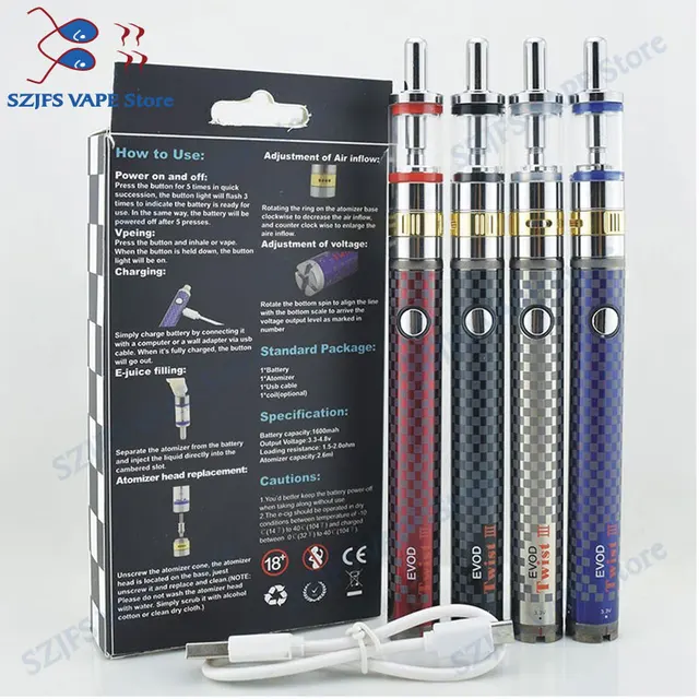 EVOD Twist III – Cigarette électronique à tension réglable 3.3-4.8V, batterie vs Evod Twist II USB 510, 4 pièces/lot