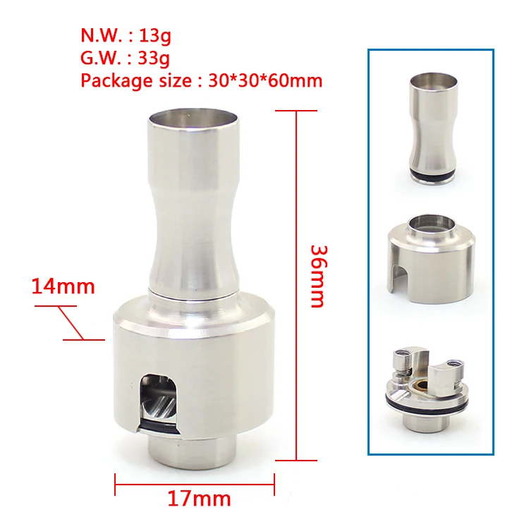 L’exocet V2 sera livré en standard avec 3 x tubes à air, 1mm, 2mm et 3.3mm, il y aura également des tubes à air alternatifs disponibles en plus et un kit de manivelle et de tube à air MTL qui peut s’ajuster à partir de 1 x .8mm à 3 x .8mm qui peuvent être achetés séparément.