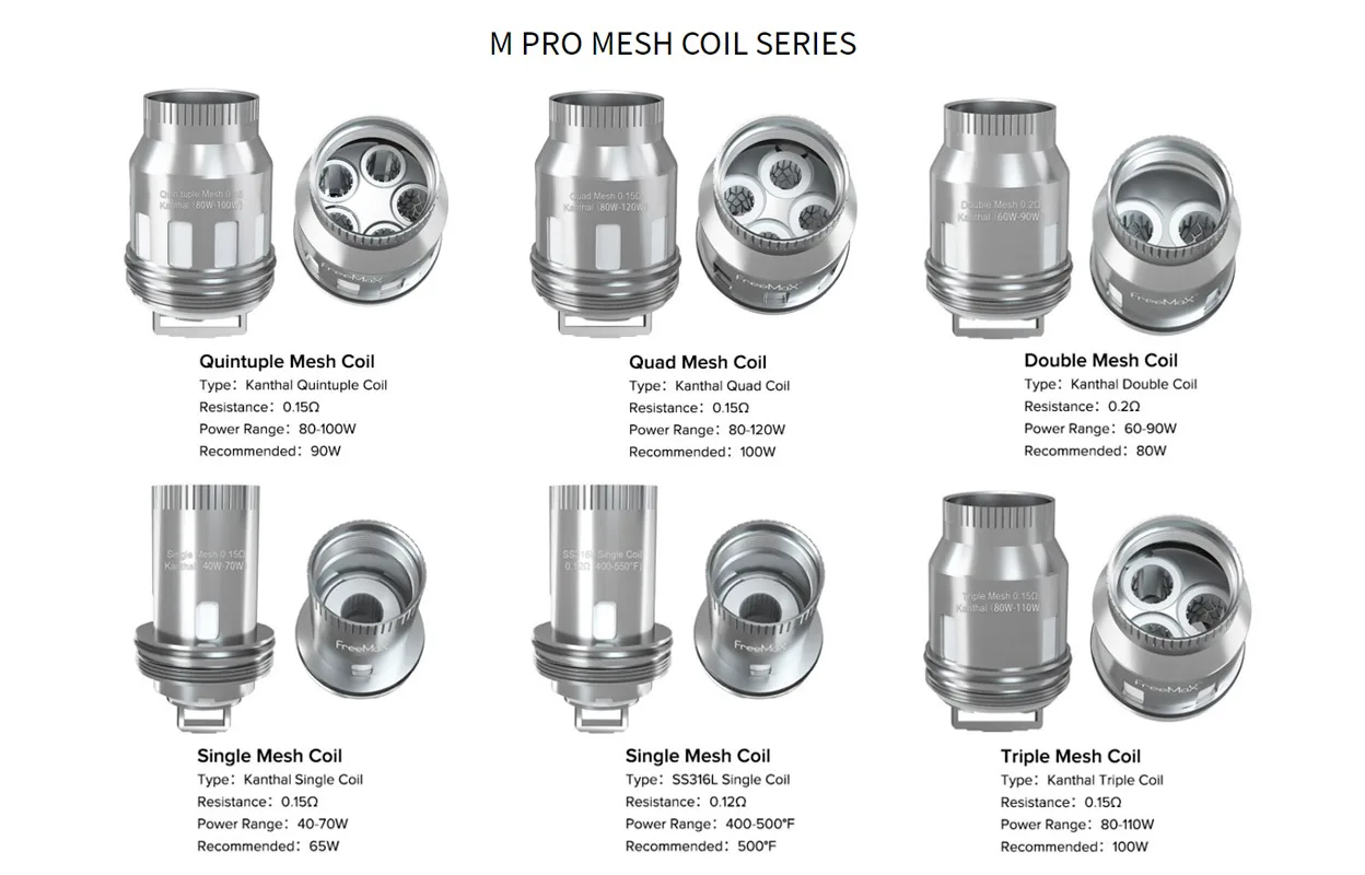 Ces bobines Kanthal à maille unique de 0,15 ohm sont parfaitement compatibles avecFreeMaxFireluke, Fireluke Pro et atomiseur de réservoir Mesh Pro.