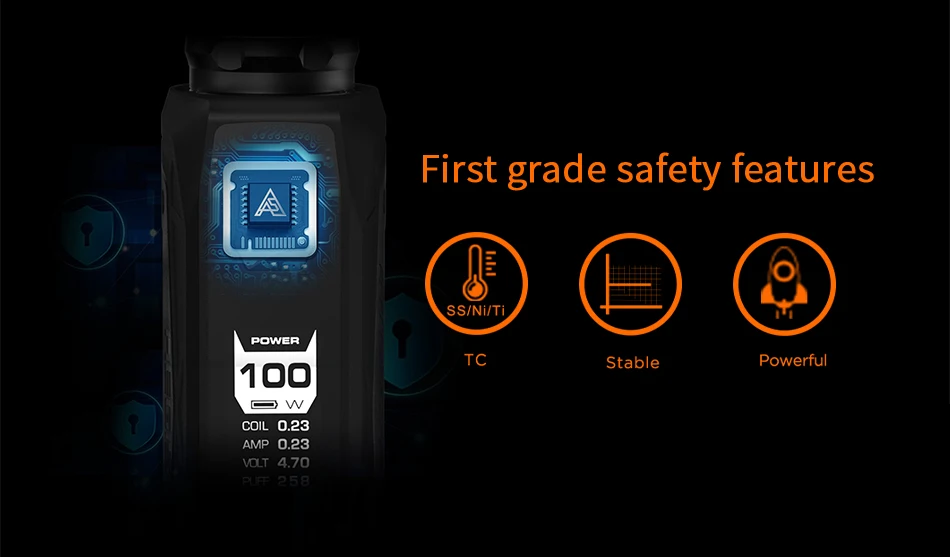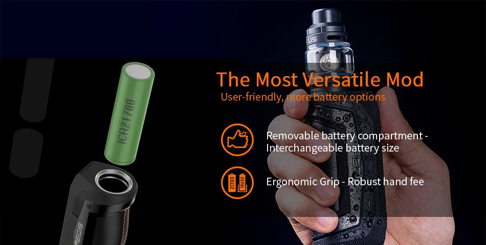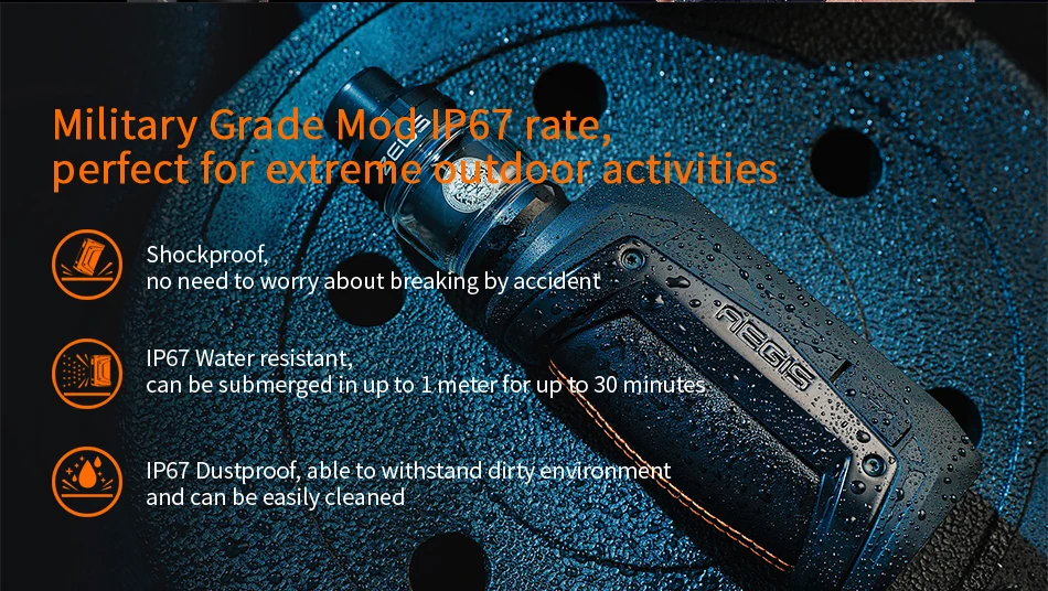 Geekvape Aegis Max KitSe compose de Max Box Mod et Zeus Sub Ohm Tank. L’aegis Max, fabriqué en alliage de zinc durable, est protégé contre la poussière, les chocs et l’eau, et maintient le niveau de protection IP67 de la série Aegis. Geekvape Aegis Max est alimenté par une seule batterie 18650/21700 et dispose d’un chipset avancé intégré, qui peut fournir une puissance de sortie maximale de 100W. Il a une puissance Variable, un contrôle de la température (bobines de nickel, d’acier inoxydable et de titane), TCR, mode de dérivation et courbe de puissance variable (VPC).