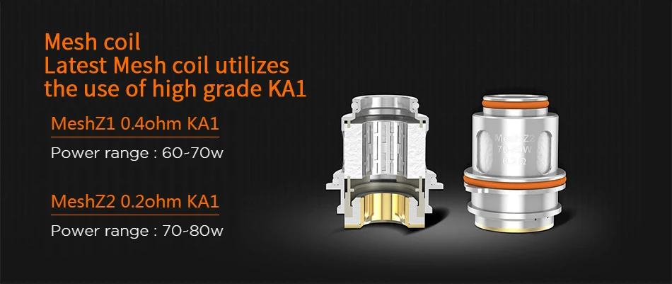 Résistance: bobine de maille de 0,4 ohm Z1 KA1 (60-70W); Bobine de maille de 0,2 ohm Z2 KA1 (70-80W)(pré-installé)