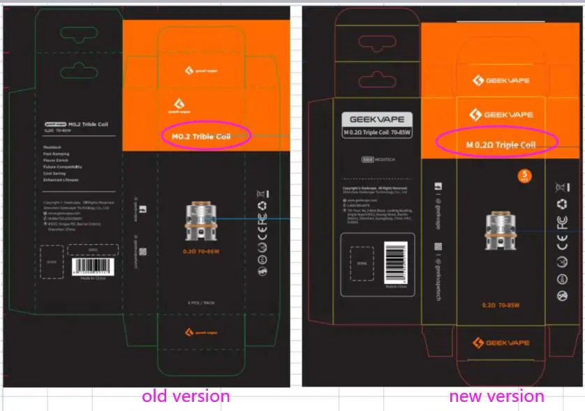 Remarque: la bobine Triple M0.2 est reappelée bobine Triple M0.2, et l’ancien et le nouvel emballage seront expédiés au hasard