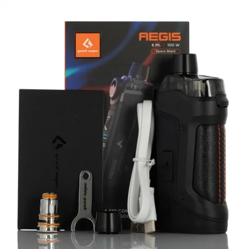 Consultez le Kit Geek Vape AEGIS Boost PRO 100W Pod Mod, doté d’une plage de 5-100W, suite de contrôle de la température, et peut contenir jusqu’à 6mL eJuice dans le pod. Construit en alliage de zinc durable, le châssis du Geek Vape AEGIS Pro maintient l’indice IP67 pour la poussière, les chocs et l’étanchéité. Utilisant une seule batterie 18650, vendue séparément, le Mod Geek Vape Aegis Pro Pod dispose d’un capuchon de batterie fileté par le bas et peut produire une puissance entre 5-100W pour une création de vapeur délicieuse. De plus, l’aegis Pro Pod Mod peut contenir jusqu’à 6mL de sel eJuice ou de nicotine dans le pod rechargeable. Associé aux bobines Geek Vape P, excellent goût et vapeur est garanti. Vendu séparément, les utilisateurs du Kit Aegis Pro Pod Mod peuvent utiliser des bobines de la série B Coil dans l’aegis Boost Plus Pod, RDTA Pod, et adaptateur 510 pour accéder à l’utilisation avec des réservoirs ou des atomiseurs reconstructibles.