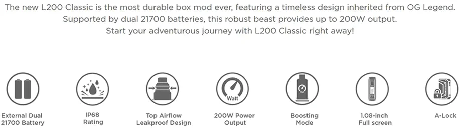 | Numéro de Modèle | GeekVape L200 (Legend 2) Classic Kit |