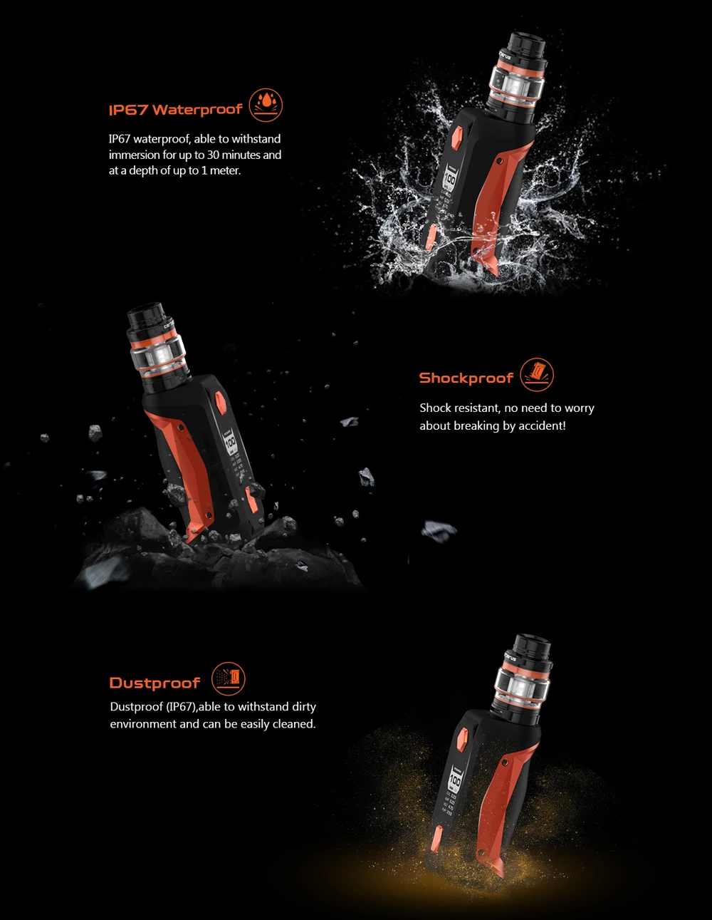 4. Trois fonctions d’épreuve, y compris étanche, antipoussière et antichoc