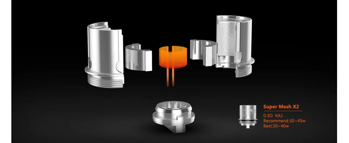 | Coil Type | Super Mesh X2 Coil 0.3ohm KA1(best 30-40W) |