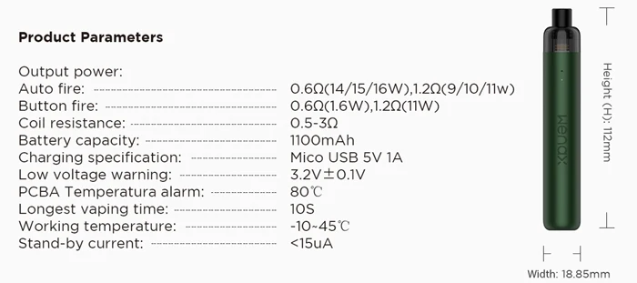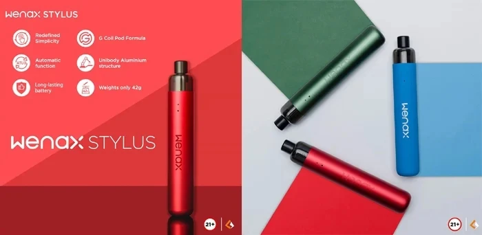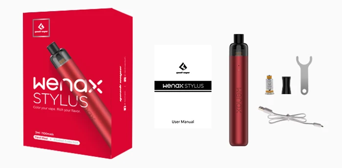 Geekvape – Kit de système de Pod de stylet WenaxEst fabriqué en Aluminium monocoque mince et portable. Geekvape Wenax Stylus Pod Kit fonctionne avec une batterie intégrée de 1100mah pour supporter une vaporisation de longue durée. Le stylet Geekvape Wenax prend en charge les modes de tir automatique et de tir des boutons en option. La cartouche de stylet Geekvape Aegis Wenax adopte la série de bobines Geekvape G: bobine de maille KA1 de 0,6 ohm et bobine de 1,2 ohm pour une saveur douce.