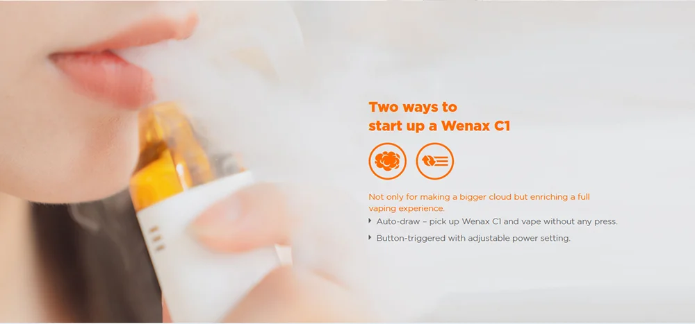 Le Kit Wenax C1 est un kit de système de dosette ergonomique et pratique et vous procurera une sensation de bouche et de main naturelle. Il est construit avec une capacité de batterie de 950mAh pour vous apporter une vaporisation toute la journée. Vous pouvez démarrer le Wenax C1 de deux façons: auto-tirage (vape sans aucune pression), déclenchement par bouton (avec réglage de puissance réglable). Et il est livré avec une puissance de sortie réglable à 3 niveaux: faible, moyen et élevé. Avec un pod rechargeable de 3ml qui présente une conception remplaçable par bobine, il est facile à utiliser. Adoptant les bobines de la série GeekVape G, il vous offrira une expérience immersive. Il suffit de prendre Wenax C1 pour profiter d’un vapotage entièrement agrippant!