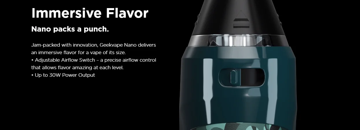 Geekvape Aegis Nano Pod Kit est alimenté par une batterie intégrée de 800mAh. Aegis Nano Pod Kit dispose d’une portabilité pratique, il fournit une sortie jusqu’à 30W avec système de flux d’air réglable. Aegis Nano MOD est conforme à la norme IP67, ce qui le rend étanche à l’eau, à la poussière et aux chocs. Il est également équipé d’un écran de 0.69 pouces pour afficher les données de vapotage. Le Geekvape Aegis Nano Pod a une capacité de 2ml.