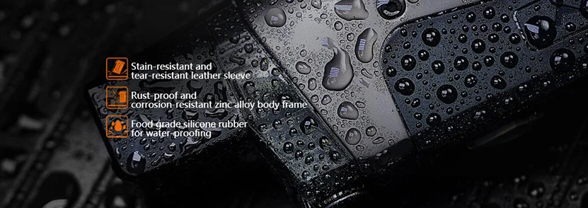 | Construction | Zinc Alloy + Top grain leather + Food grade silicone |