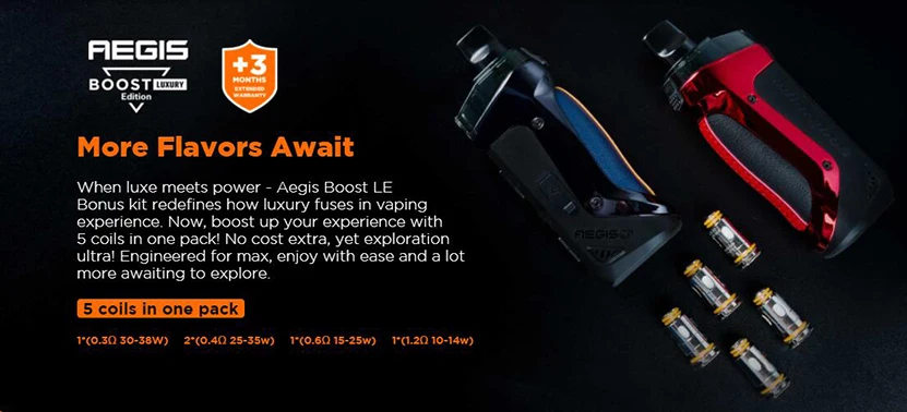 | Numéro de Modèle | GeekVape Aegis Boost LE Bonus Kit with 5 Coils |