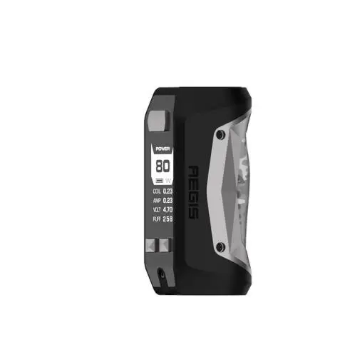 Geekvape Aegis Mini Mod est alimenté par une batterie intégrée de 2200mah et peut atteindre une puissance maximale de 80W. Équipé de la puce mise à jour AS, il est conçu pour être le mod le plus durable avec des protections extrêmes contre l’eau, les chocs et la poussière. Et la vitesse de tir est de 9ms. Le mélange de l’alliage, du cuir et du silicium SLI offre une durabilité intense et une grande ergonomie.