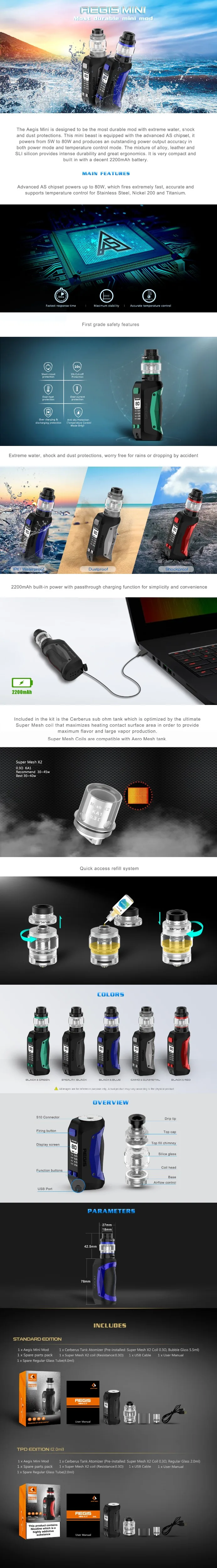 | Numéro de Modèle | Geekvape Aegis Mini Kit with Cerberus Tank |