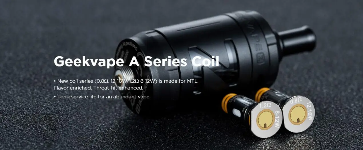 2x bobines Geekvape série A (préinstallées 0.8ohm, rechange 1.2ohm)