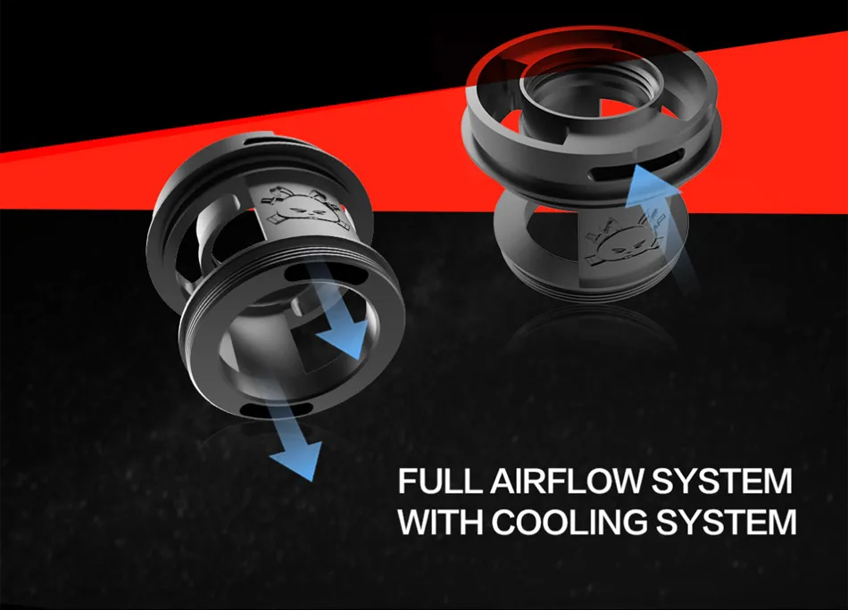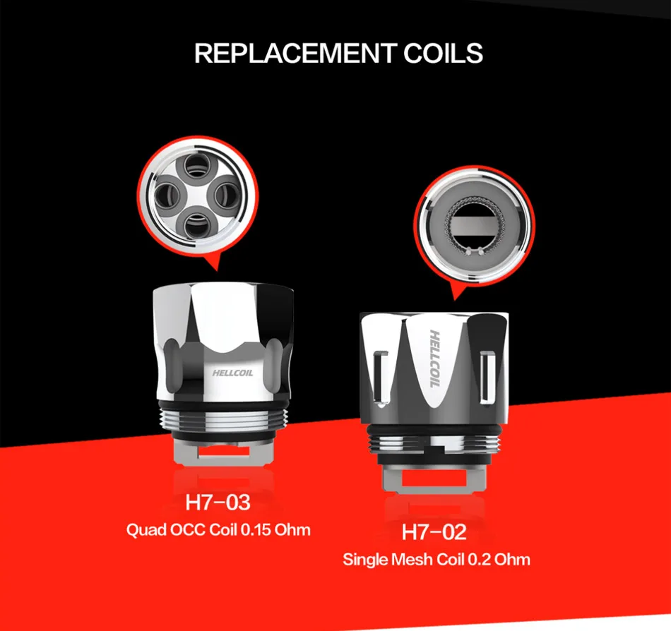 Il présente une myriade de Mesh spécialisés et de bobines OCC Quad, une capacité d’e-liquide massive et un contrôle dynamique du flux d’air supérieur et inférieur! Caractéristiques avec réservoir de 28mm Sub Ohm et 25mm à la base. Structure de flux d’air hybride intégrée et système de refroidissement à double flux d’air pour créer une saveur intense et stimuler énormément la production de nuages. En outre, il existe deux types de bobines pour vous offrir une excellente saveur, avec la bobine à maille unique hallcoiltm (H7-02) et la bobine de rechange Quad OCC (H7-03). De plus, il est hautement adapté à la bobine Hellcoil H7-01/H7-02/H7-03 pour répondre à vos diverses demandes. Quant à la capacité e-liquide, elle est jusqu’à 5ml grâce au verre à bulles de rechange. De plus, la poignée moletée permet d’enlever le capuchon supérieur et de le remplir facilement. La pointe anti-goutte antibactérienne 810 et un adaptateur 510 rendent la propriété du gros lapin exceptionnelle.