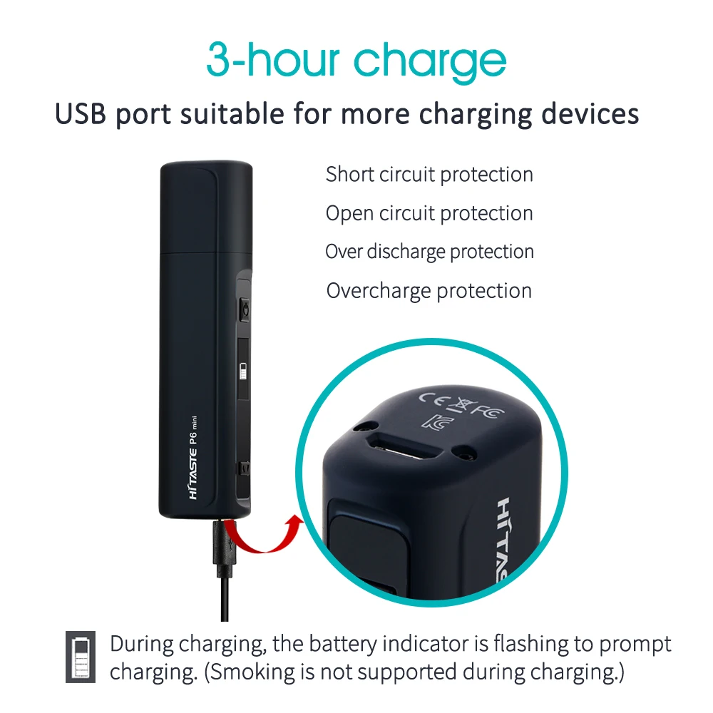 Une mise à niveau de Hitaste P6 avec un design compact. Écran d’affichage HD instructif avec fonction de Pause. Seulement 55 grammes et peut supporter 12-15 bâtons lorsqu’il est complètement chargé.