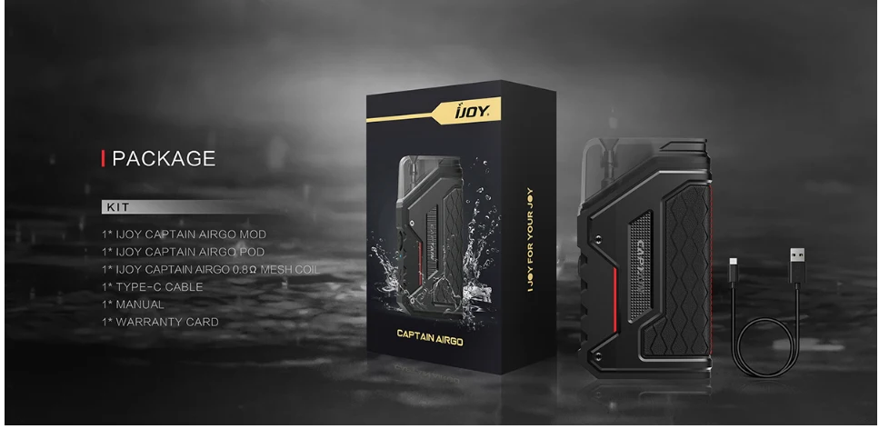 IJOY – Kit Pod Captain AirGo, Cigarette électronique étanche, vaporisateur, batterie 930mAh, réservoir 5.5ml, Original