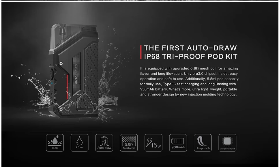 IJOY Captain AirGo est le premier kit de dosettes tri-proof IP68 de qualité militaire à tirage automatique, il est équipé d’une bobine de maille améliorée de 0,8 Ω pour une saveur incroyable et une longue durée de vie. Jeu de puces Univ pro3.0 à l’intérieur, opération facile et sûre à utiliser. De plus, grande capacité de dosette de 5.5ml pour une utilisation quotidienne, charge rapide de Type C et longue durée avec batterie de 930mAh. De plus, conception ultra portable et plus solide grâce à la nouvelle technologie de moulage par injection.