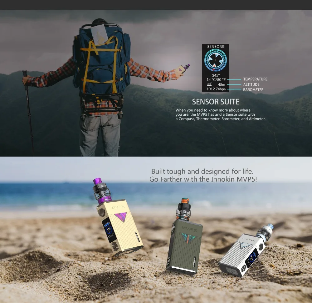 Modes VW/TC haute performance. De plus, le Kit d’alimentation mobile Innokin MVP5 fournit un kit de survie pratique et pratique qui fournit des baromètres, des lampes de poche, des altimètres, des compas et des thermomètres pour aider avec les difficultés. Le réservoir Ajax est livré avec une capacité de 5ml de jus électronique. Grâce au remplissage coulissant supérieur et au flux d’air réglable en bas, il est facile à utiliser et empêche les fuites de liquides électroniques. Les nouvelles bobines de matrice 3D vous apporteront une saveur stable et une expérience de vaporisation DTL. Il correspond également au réservoir z-coil, il vous apportera la meilleure expérience de vapotage MTL. Des protections de sécurité à bord sont appliquées pour garantir une vaporisation sûre et stable. Disponible en 5 couleurs: gris, noir, blanc, forêt, sable.