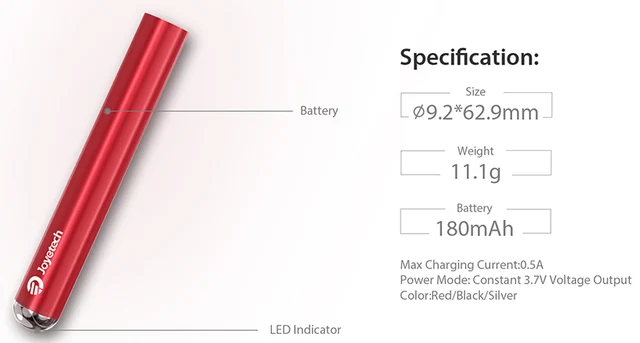 La batterie pour Mac eRoll de Joyetech est conçue pour le Kit de Mac Simple eRoll de Joyetech. Il est livré avec une batterie intégrée de 180mAh et prend en charge une sortie constante de 3.7V. Il est parfaitement assorti à la cartouche Joyetech eRoll MAC. Il suffit de l’obtenir pour profiter d’un bon vapotage. Disponible en 3 coloris: noir, argent et rouge.