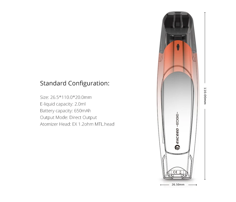 Conçu dans un souci d’ergonomie, le EXCEED Edge dispose d’un châssis structurel incurvé avec la forme d’une voiture de sport. Quelle beauté de vapotage exquise des arts.