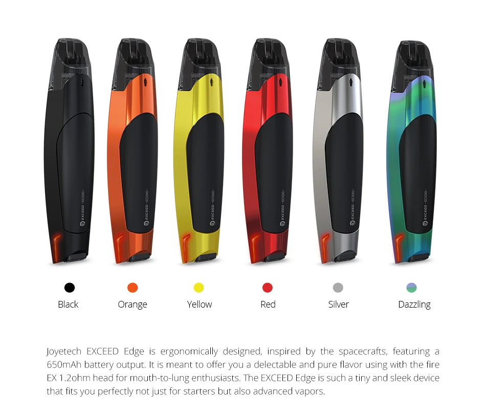 Étant un système de dosettes alors que vous pouvez encore changer la tête de bobine comme vous le souhaitez, le Joyetch dépasse Edge est conçu de manière ergonomique, inspiré des radeaux spatiaux. Il est destiné à vous offrir une saveur délébile et pure en utilisant avec la tête fire EX 1,2 ohm pour les amateurs de bouche à poumon. Le dépasse Edge est un appareil si petit et élégant qui vous convient parfaitement non seulement pour les débutants mais aussi pour les vapeurs avancées.
