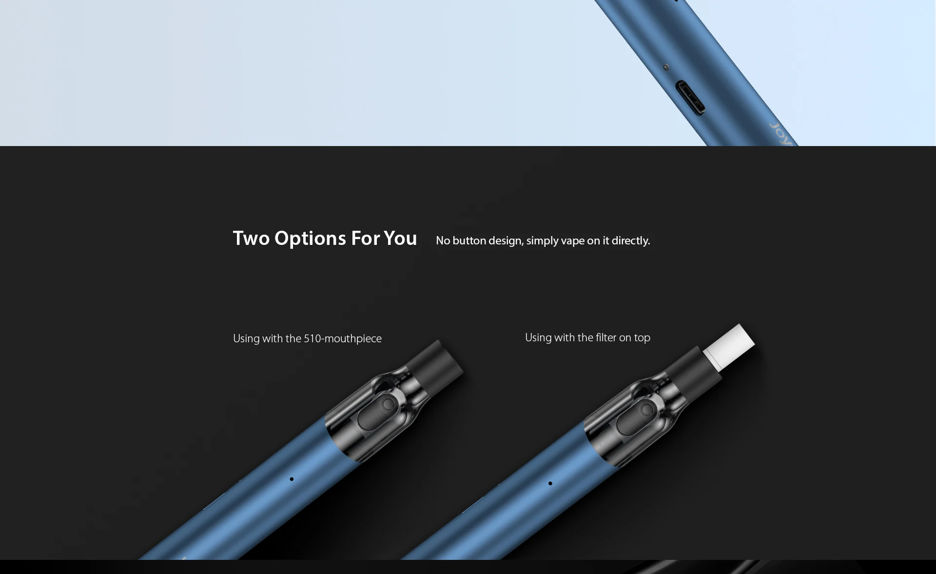 6. Deux options: avec embout buccal 510, avec le filtre sur le dessus
