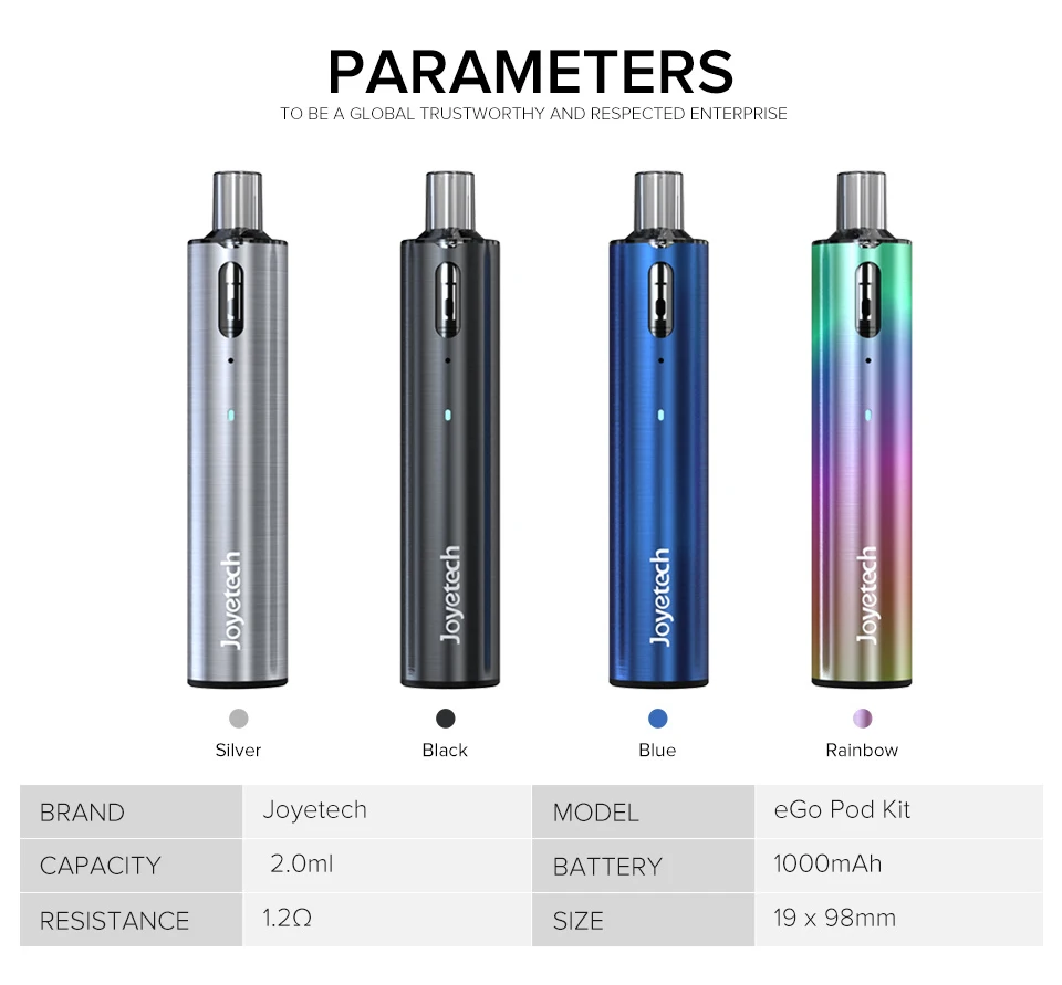 La poursuite de la simplicité continue: Joyetech eGo Pod Kit, le kit de démarrage le plus simple et conçu pour le minimaliste. Sans clics de bouton et réglage, il permet d’inhaler directement. Et il est équipé d’une batterie intégrée de 1000mAh qui peut satisfaire votre vapotage de deux jours. De plus, son corps est fabriqué en matériau SS durable, avec une taille compacte et un poids léger.