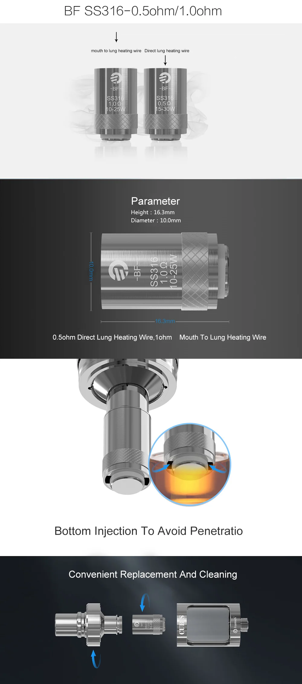 | Compatible Model | Joyetech BF SS316 coils |