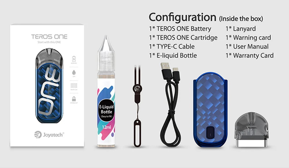Joyetech – Teros One Pod Kit, cartouche 2ml, batterie 650mAh, Mod Cigarette électronique avec bobine de maille 0,5ohm pour MTL vapotage e