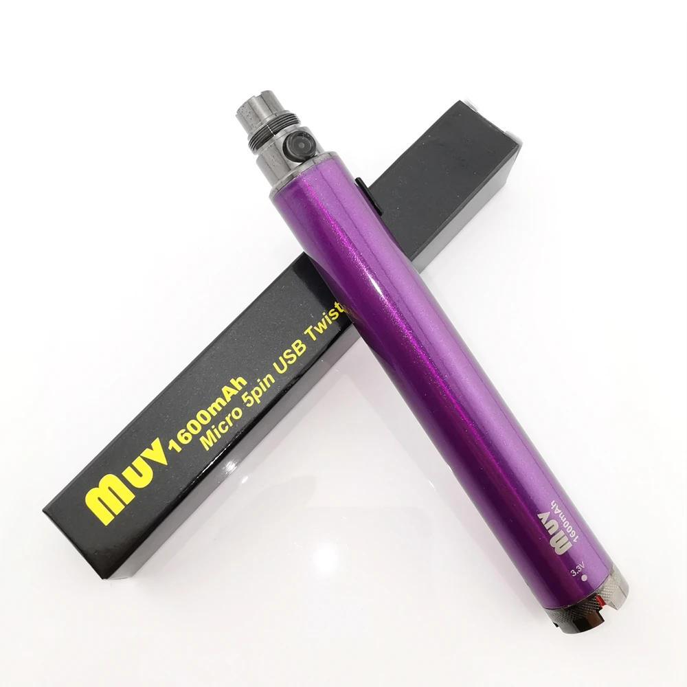 La batterie MUV est une batterie rechargeable innovante eGo Twist, avec port usb micro 5 broches à chargement latéral, grande puissance 1600mah, capuchon de tension torsadé inférieur pour une utilisation facile. Il dispose également d’un traitement de surface de revêtement sous vide, qui n’a pas de finition collante et sans rayures.