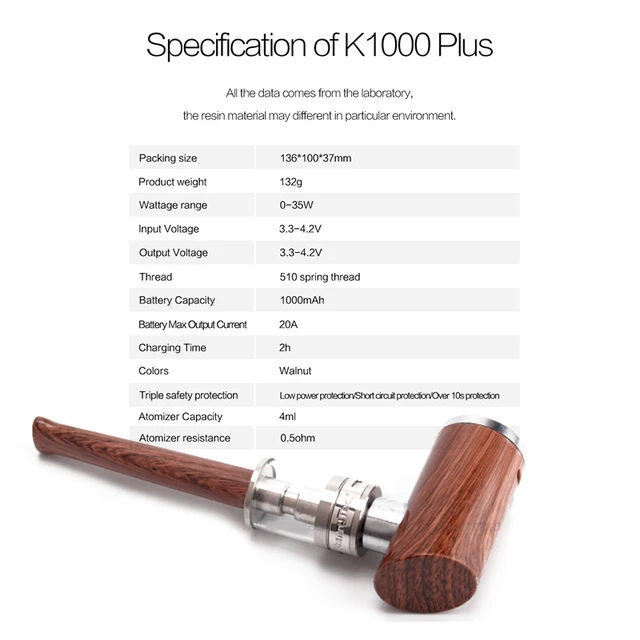 Taille de l’atomiseur K1000 Plus: 21mm x 35mm (sans filetage et embout d’égouttage)